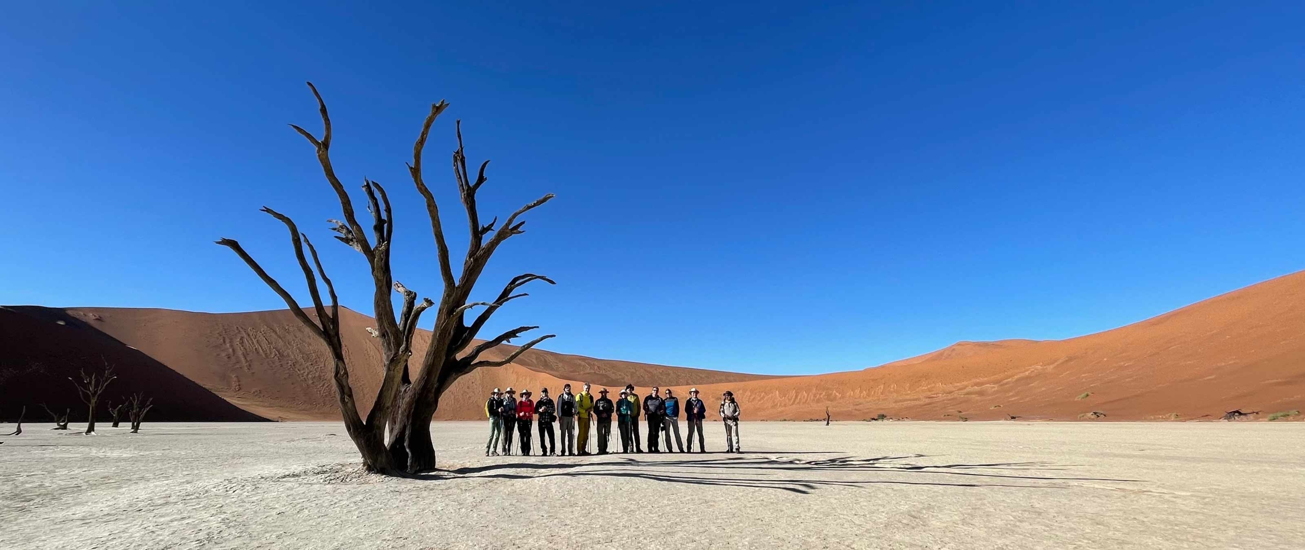 Heute geht es sehr früh los! Wir wollen das vor allem bei Fotografen sehr beliebte Dead Vlei mit seinen hunderte Jahre alten Kameldornbäumen natürlich im besten Morgenlicht besichtigen. Dann geht es zu Fuß auf die höchste Düne Namibias, die 250 Meter hohe „Big Daddy“. Vom Gipfel bietet sich ein imposanter Blick und ab hier startet dann unser exklusives Abenteuer: „Normale“ Touristen müssen von Sossusvlei nämlich wieder auf der Straße aus dem Nationalpark hinaus fahren. Wir aber wandern die nächsten Tage westwärts durch den ansonsten unzugänglichen Naukluft Nationalpark bis zum Atlantik. Und wir werden keinen anderen Touristen mehr begegnen, sondern nur noch Oryxantilopen, Geckos, Chamäleons und Seevögeln.